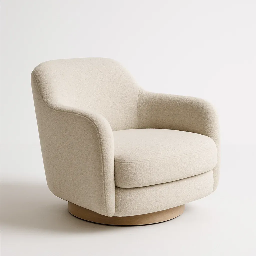 Una poltrona girevole regala libertà nei movimenti e comfort avvolgente, perfetta per chi desidera un angolo dedicato al relax e alla concentrazione.