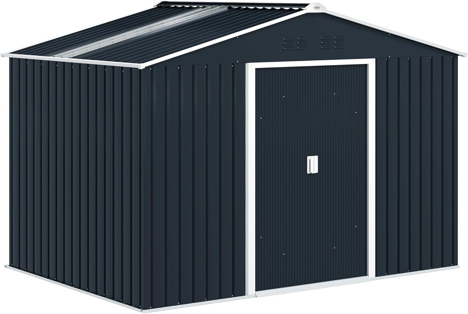Outsunny Casetta da Giardino 5m² in Acciaio Zincato con kit Fondazione, Prese d'Aria, Capanno da Giardino con Tetto Inclinato, Doppia Porta Scorrevole Bloccabile, Capanno Porta Attrezzi, Grigio Scuro