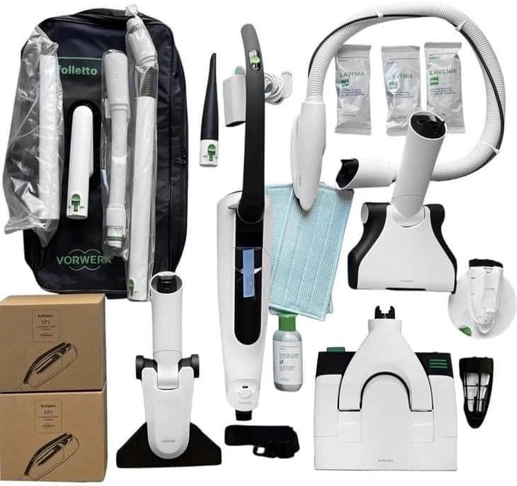FOLLETTO VK7S – Aspirapolvere Cordless Senza Fili con Batteria, Caricabatteria, Sacchetti e Granuli Profumati (KIT: Multi EB7S + Pulilava SP7S + 12 Sacchetti + Pack Auto + Borsa Accessori)